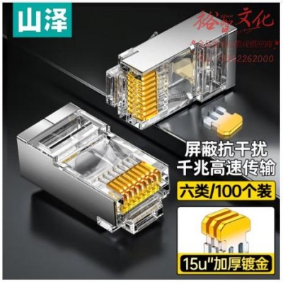 山泽 六类网线水晶头 6类千兆屏蔽网络接头 CAT6类RJ45网络连接器 工程15U镀金SKU:yzwhyp810665