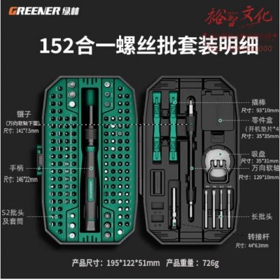 绿林(GREENER)螺丝刀套装152合1 拆机工具全套精密十字一字六角梅花多功能093055 SKU:yzwhyp810722