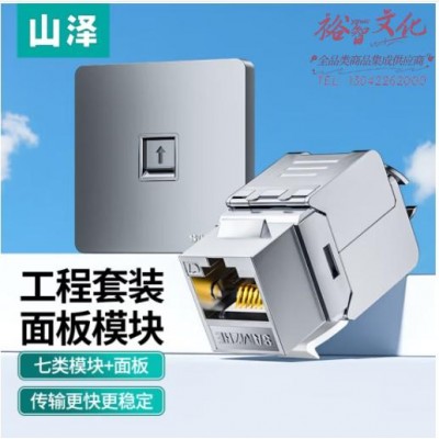 山泽 七类网络模块面板套装 Cat7网线插座 单口86型工程家装电脑面板免打SKU:yzwhyp810744