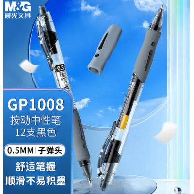 首页 > 办公用品 > 文具 > 晨光(M&G)文具GP1008/0.5mm黑色中性笔 经典按动子弹头签字笔 学生/办公用水笔 12支/盒