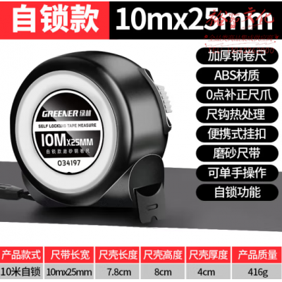 绿林(GREENER)10米高精度加厚加硬盒尺 防割自锁钢卷SKU:yzwhyp810779