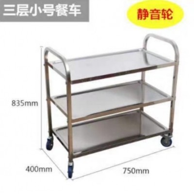不锈钢三层小号餐车 酒水车餐车服务车厨房推车置物架酒楼送餐车