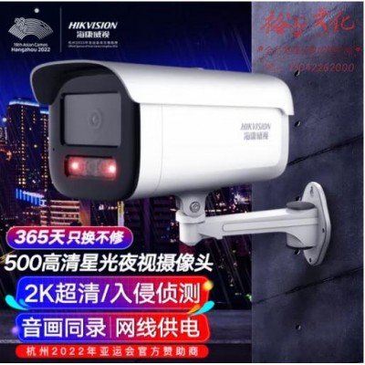 HIKVISION海康威视监控摄像头500万2K高清星光夜视室内外监控摄像机可录音 手机远程 SKU:yzwhyp810993