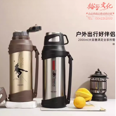 麦得丰 304真空保温壶不锈钢大容量车载旅行水壶便携家用水杯宿舍M-9109真空旅游壶2000ml