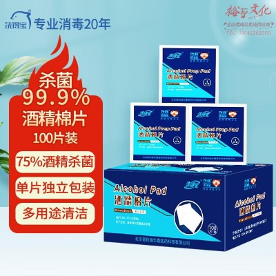 洗得宝75%酒精棉片 消毒酒精湿巾一次性独立包装 擦手机镜片 100片65*30mm SKU:yzwhyp811664