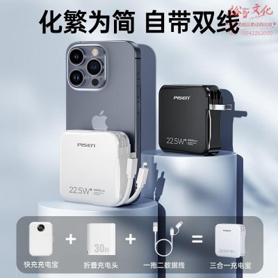 品胜(PISEN)带插头带双线10000毫安充电宝 22.5W快充 便携小巧 黑LS-DY236 SKU:yzwhyp811876