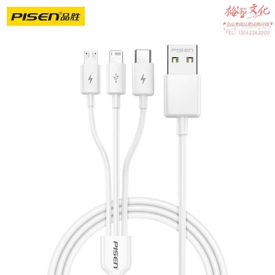 品胜(PISEN)三合一充电线 一拖三快充线 USB TYPE-C Lightning AP07-1200 1.2米白色 SKU:yzwhyp811879