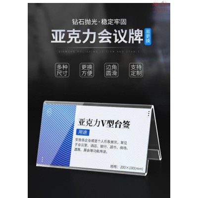 V型桌牌座位牌席位牌台卡台签桌签亚克力桌面展示牌评委牌名字牌工位职位牌 【标准款】三角桌牌200*100mm SKU:yzwhyp811891