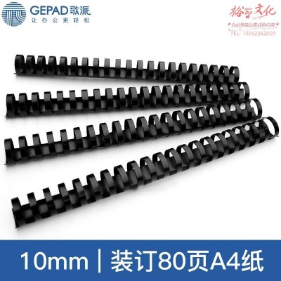 歌派 (GEPAD)S2 装订机胶圈 黑色10mm 装订80页 21孔A4合同标书装订耗材 100支/盒 SKU:yzwhyp811969