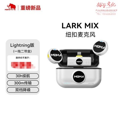 首页 > 广播、电视、电影设备 > 组合音像设备 > 会议、广播及音乐欣赏系统 > 猛玛(MOMA)Lark Mix 一拖二无线领夹麦克风猛犸手机直播vlog户外采访微小型纽扣收音麦Lightning版白色 SKU:yzwhyp812105