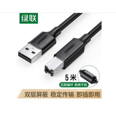 绿联(UGREEN)USB2.0打印线 方口 5米 黑 10329