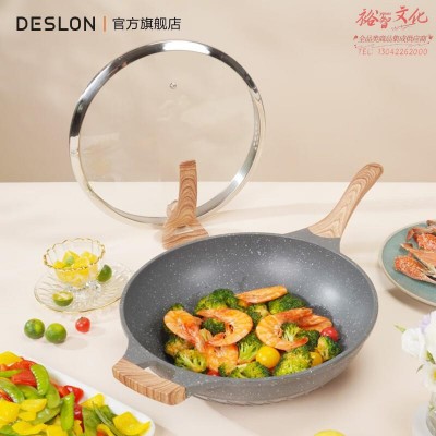 德世朗10102DFS-C873-HZP麦饭石不粘炒锅 32cm电磁炉燃气灶通用 SKU:yzwhyp812518