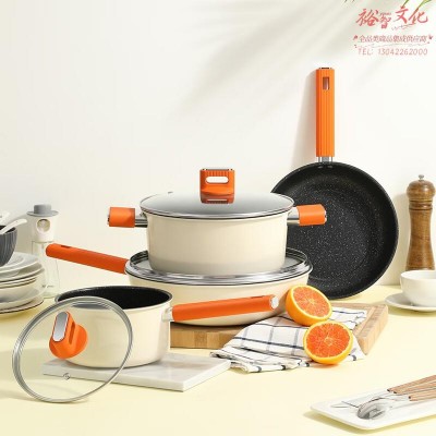 德世朗DFS-TZ936C锦“橙”精铁不粘锅四件套 炒锅煎锅汤锅奶锅 SKU:yzwhyp812581