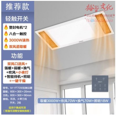 四季沐歌(MICOE)M-YF7055风暖浴霸暖风照明排气一体集成吊顶风暖浴霸双风口取暖/换气SKU:yzwhyp812647