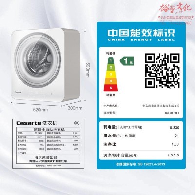 卡萨帝(Casarte)揽光C3壁挂洗衣机 3公斤迷你滚筒洗衣机全自动C3 3W1U1 SKU:yzwhyp812684