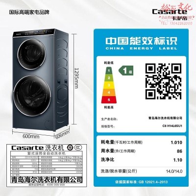 卡萨帝(Casarte)双子云裳滚筒洗衣机14KG分区洗护 直驱变频洗烘一体 双子星平衡科技C8 H14L6SU1 SKU:yzwhyp812686