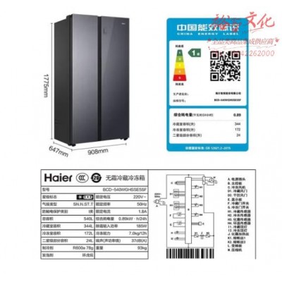 海尔(Haier)冰箱540升风冷无霜对开双开门超薄家用双变频一级能效嵌入式电冰箱BCD-540WGHSSE5SFSKU:yzwhyp812718