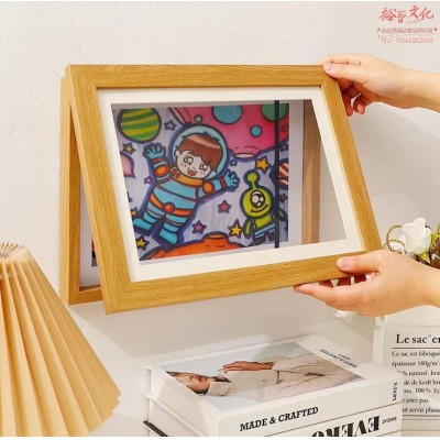 收纳画框 奖状展示架 可替换磁吸翻盖木质相框架 4K可装38*52cm原木色(个)SKU:yzwhyp813120