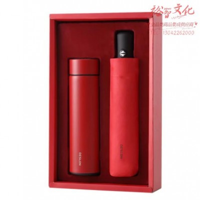 德世朗DJL-TZ066A温显杯480ml 自动雨伞套装 锦鲤红色 SKU:yzwhyp813147