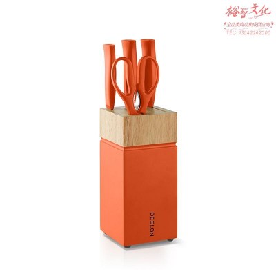 德世朗厨房刀具五件套切菜刀水果刀厨房剪厨房刀具套装组合 ZR-TZ013-5 橙色 SKU:yzwhyp813272