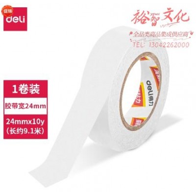 得力30437小卷芯棉纸双面胶带24mm*10y*80um(白色)(1卷/袋) SKU:yzwhyp813396