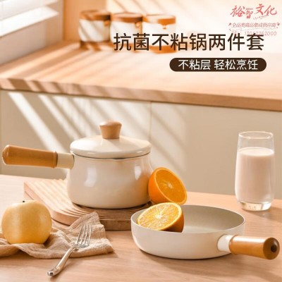 德世朗DFS-TZ839锅具套装麦饭石不粘锅平底煎锅奶锅2件套 奶锅14cm煎锅18cm SKU:yzwhyp813542