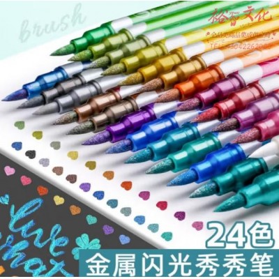 金值 24色金属秀秀笔 鎏金彩绘勾线笔高光闪光珠光手帐笔 JK0709(盒)SKU:yzwhyp813627