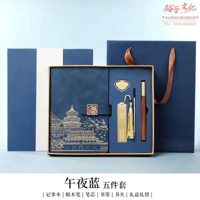 国潮笔记本礼盒 A5记事本 檀木笔 笔芯 书签 书夹蓝色五件套 JL-A5蓝-5(套)SKU:yzwhyp813740