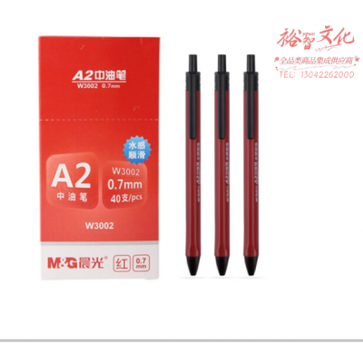 晨光ABPW3002水感顺滑中油圆珠笔红0.7(支)(40支/盒 SKU:YZB200001