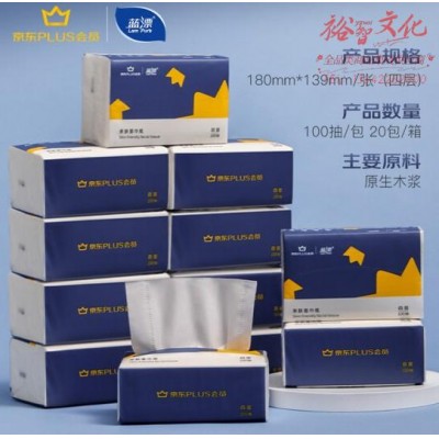 蓝漂抽纸 纸巾 面巾纸 100抽*20包4层纸抽整箱装SKU:yzwhyp813814