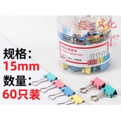 得力 15mm 彩色长尾夹票夹(混) 60只/盒SKU:yzwhyp813913