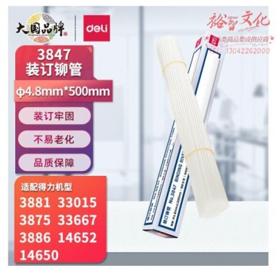 得力(deli)3847 财务装订机专用透明装订铆管Φ4.8mm*500mm 100支/盒装SKU:yzwhyp814032