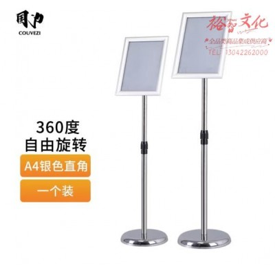 不锈钢可伸缩立牌展示牌水牌展示架立式指示牌引导牌支架菜单 A4银色直角SKU:yzwhyp814107