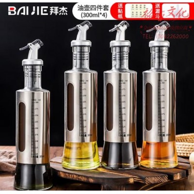 拜杰(Baijie)玻璃油壶油瓶套装家用厨房酱油瓶醋瓶控油防漏嘴调料瓶调味瓶 四件套 300MLSKU:yzwhyp814149