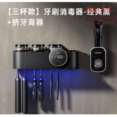 智能紫外线牙刷消毒烘干器免打孔卫生间置物架牙刷牙杯收纳盒 【三杯款-经典黑】 挤牙膏器SKU:yzwhyp814216