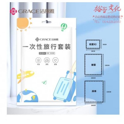 洁丽雅(Grace) 旅行一次性床单被套罩枕套加厚四件套装出差旅游酒店宾馆隔脏 一次性床上用品 双人款四件套SKU:yzwhyp814239