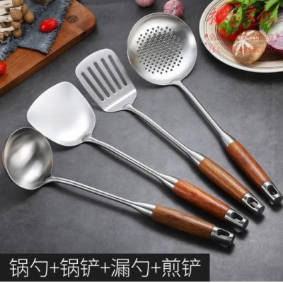 304不锈钢花梨木厨具套装全套家用锅铲厨房铲子汤勺煎铲漏勺炒菜勺子炊具 四件套(粥勺 锅铲 漏勺 煎铲)SKU:yzwhyp814298