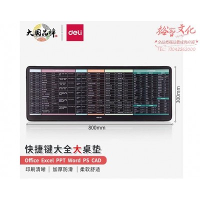 得力(deli) 83004 快捷键鼠标垫 800*300*3mm 电脑键盘桌垫SKU:yzwhyp814363