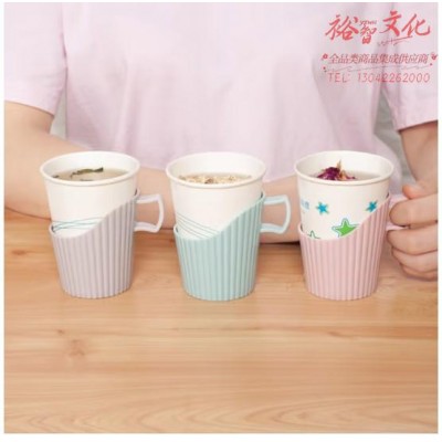一次性杯子杯套 杯座加厚塑料杯托防烫手隔热纸杯托 6个/包SKU:yzwhyp814378