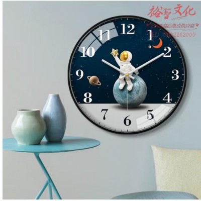 摩门(Momen) 挂钟客厅钟表挂墙时钟石英钟儿童卧室创意卡通挂表 手可摘星(黑框) 14英寸(35cm)SKU:yzwhyp814408