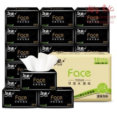 洁柔抽纸 3层130抽面巾纸*18包 M号 黑Face 湿水强韧 自然无香SKU:yzwhyp814539