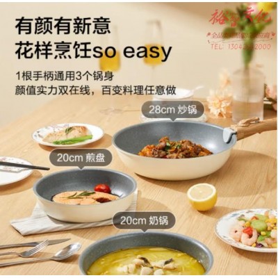 京东京造 锅具套装 珍珠白系列叠叠锅三件套 煎锅奶锅炒菜不粘锅可拆手柄SKU:yzwhyp814549
