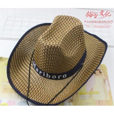 趣光 钓鱼骑车男士牛仔帽度假夏沙滩大沿帽子女太阳防晒帽子男遮阳草帽 草编藏青带 可调节SKU:yzwhyp814587