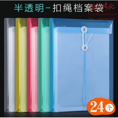 A4文件袋12个半透明资料袋扣绳档案袋塑料透明大容量防水公文袋票据收纳袋 两款颜色-24个装SKU:yzwhyp814591
