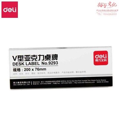 得力9293V型亚克力桌牌(透明)SKU:yzwhyp814709