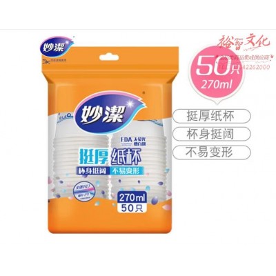 妙洁一次性纸杯 挺厚纸杯 270ml 大杯 50只装 MDCA50-BSKU:yzwhyp814829