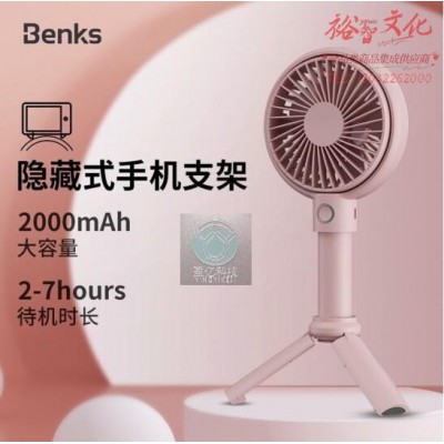 邦克仕(Benks)手持小风扇 桌面静音迷你风扇 多功能便携可充电风扇 三档风速带电池带磁吸支架 2000mAh/粉色SKU:yzwhyp814840