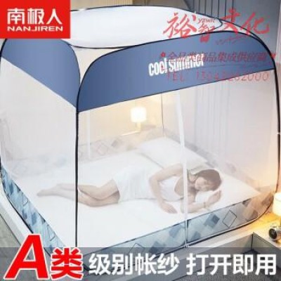 南极人蚊帐双开门免安装1.2米床钢丝蚊帐蒙古包式全底坐床式蚊帐家用SKU:yzwhyp814911
