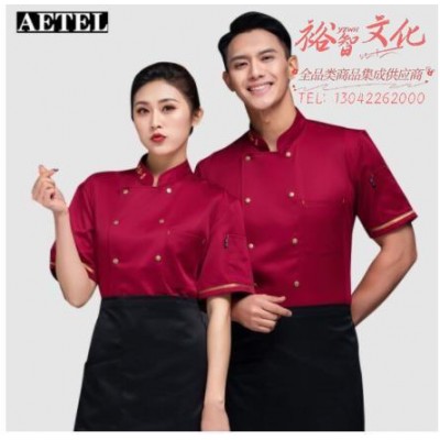 首页 > 装具 > 盥洗、厨房用织物制品 > AETEL 厨师工作服男短袖透气高档酒店餐厅厨师中国风夏季后厨房衣服定制logo QJ领口美食 红色短袖单上衣 【M-4XL码 下单请咨询】SKU:yzwhyp815091