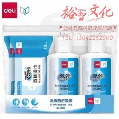 得力31015消毒防护套装(混)(洗手液60ml*2 杀菌湿巾棉片*2)SKU:yzwhyp815130